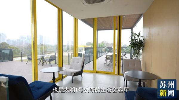 生态是吴中区的核心竞争力,更是太湖畔的亮丽底色。在太湖1号公路的骑行驿站,透过落地玻璃,可将太湖美景尽收眼底。二楼的观湖区更是尽享太湖慢生活。这里既是守护太湖生态的前沿观测点,也是太湖1号公路的生态会客厅。