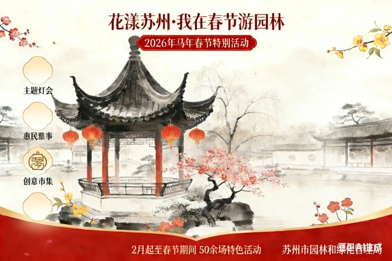 春节期间,以“花漾苏州”为主题的“我在春节游园林”系列活动推出,涵盖主题灯会、惠民雅事、特色市集三大板块,深挖园林艺术底蕴,融合观展、体验、消费、研学等多重维度,世界文化遗产-苏州古典园林拙政园、留园、狮子林、耦园举办的50余场特色活动陆续登场,邀市民游客感受融古贯今的苏式年韵。