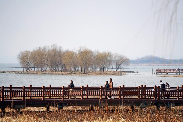 农历大年初二(2月18日),阳光和煦、气温舒适。苏州太湖畔马山公园里,不少市民结伴沿湖漫步、临水观景。湖面波光粼粼,远处青山叠翠,微风拂来水汽清新。有人驻足拍照留念,有人带着孩子亲近自然,在湖光山色中感受假日的惬意与年味。