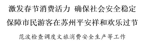 2月18日是大年初二,市委书记范波检查调度文旅消费、安全生产等工作,看望慰问一线值守干部职工。他强调,要深入学习贯彻习近平总书记关于安全生产的重要论述和对江苏、苏州工作重要讲话重要指示精神,认真落实省委信长星书记、省政府刘小涛省长在春节假期安全生产调度会上的讲话要求,以优质供给激发消费潜能,以安全环境保障消费活力,确保市民游客在苏州平安祥和欢乐过节。