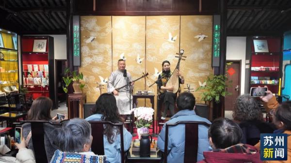 畅游苏州,少不了品一壶茶,听一曲评弹,感受吴侬软语里的江南年味。假日里,苏州不少评弹馆座无虚席。