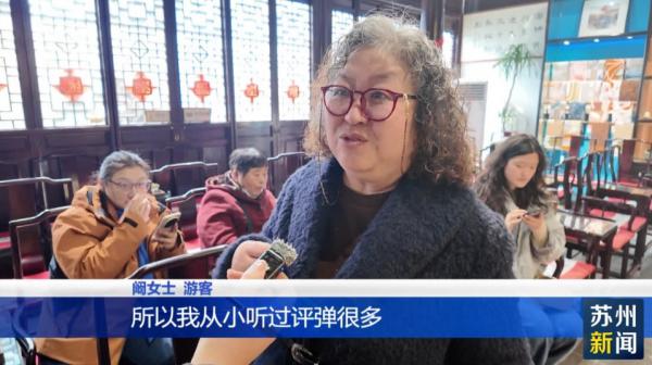 游客阚女士表示,自己的父亲很喜欢全国各地的戏曲曲艺,所以从小听过很多评弹,这种姑苏的氛围和文化气息非常好。