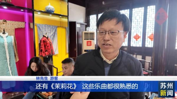 游客林先生表示,从上海赶过来的,网上以前听过一些苏州评弹,包括刚才唱的《声声慢》,还有《茉莉花》,都很熟悉的,所以听起来非常亲切,而且确实很好听。