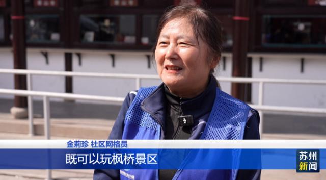 社区网格员金莉珍表示,游客要到山塘街去玩,就指导他坐游船到七里山塘下船,既可以玩枫桥景区,又可以乘游船,到山塘街玩。希望游客对苏州留下美好的印象。
