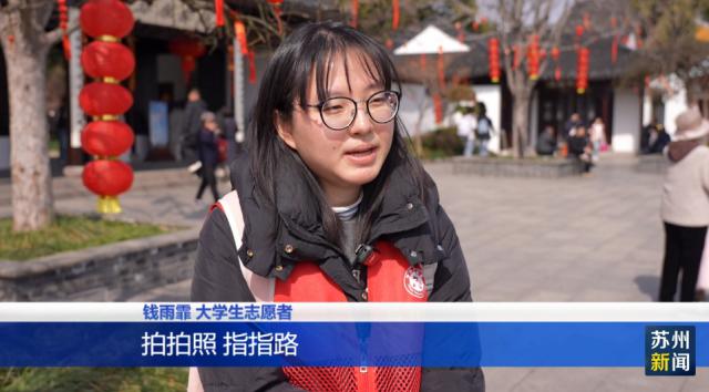大学生志愿者钱雨霏介绍,会帮助外地来的游客拍拍照、指指路。