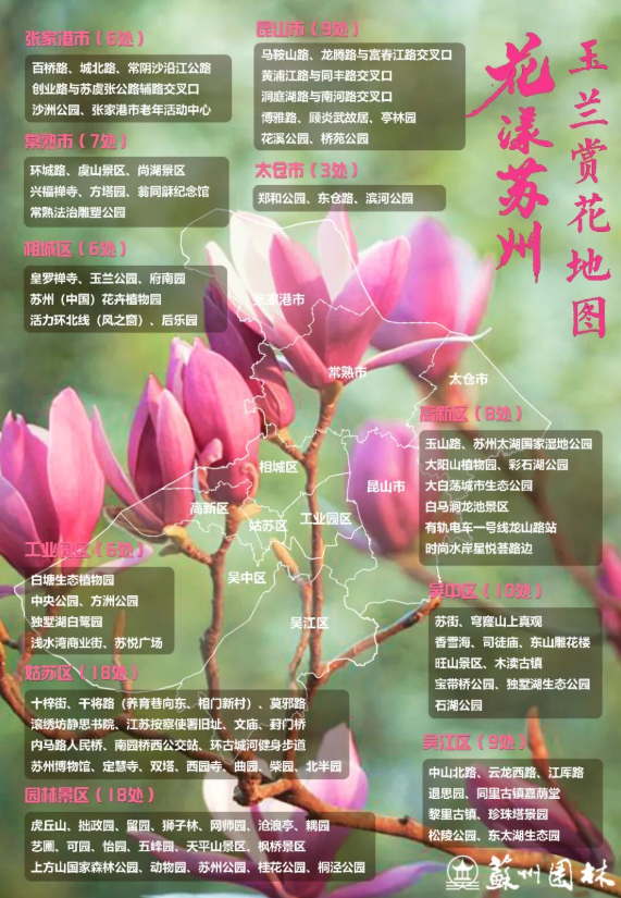 我们整理了一份「玉兰赏花地图」