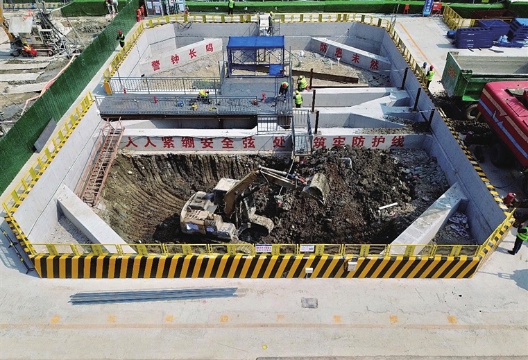 “该基坑是苏州北站10号线地铁预留隧道施工的前置工程,早开工才能保障后续盾构施工顺利推进,也能规避施工交叉、预留地层沉降稳定时间。”中交隧道工程局高铁苏州北站产业商务配套(地下配套)工程项目经理惠海鹏介绍,盾构机将从苏州北站站房地下三层基坑开始,下穿京沪高铁自北向南推进,并最后从临时盾构井垂直吊出。