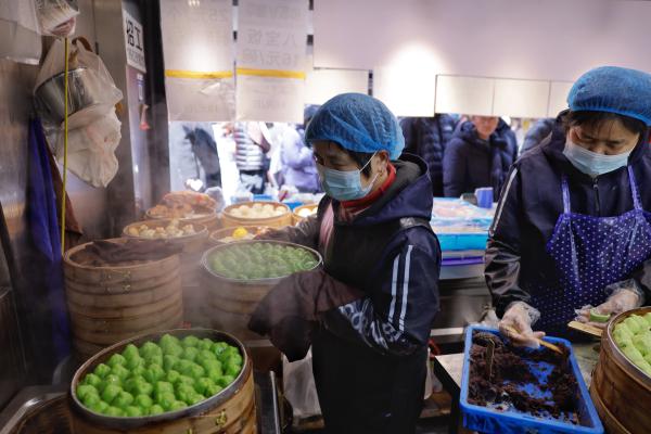 春光明媚,昨天(3月13日)午后,葑门横街人潮涌动,熙来攘往。青团店前排起长队,三个阿姨坐在门内,指尖翻飞,一屉屉青团从蒸笼里端出,转眼就被提走。临近清明,正是销售旺季。菜摊上也换了颜色——香椿扎成小把,暗红的芽透着香;蚕豆堆成小山,青绿饱满。街上往来的人,手里都提着些春意。(苏报融媒记者 倪黎祥/文/摄)