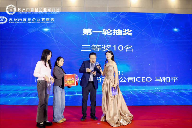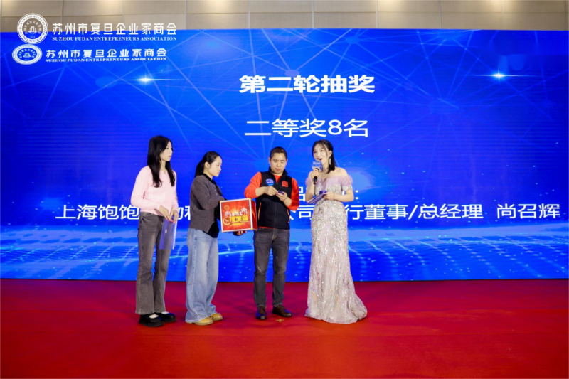 活动最后, 苏州市复旦企业家 商会 副会长陈宏庆先生为赞助商颁奖举行授牌仪式。为 招商银行苏州分行、 盘科节律(苏州)生物科技 股份有限公司 、 同程网络科技股份有限公司 、 苏州美奥口腔医疗服务有限公司 、苏州惠诺生物科技有限公司、苏州码力机器人有限公司 、上海金容合咨询管理有限公司 赞助企业 举行授牌,感谢各企业对 苏州市复旦企业家商会 2026年新春团拜会 的鼎力支持。