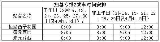注:1、扫墓高峰期加密该段车次,无人上下客站点跳站运行。2、扫墓结束后,可至原线下车站点对向公交站点乘车返回地铁7号线“石湖莫舍”站。