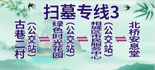 注:扫墓结束后,可至原线下车站点对向公交站点乘车返回地铁3号线石湖北站或石湖渔家村停车场。