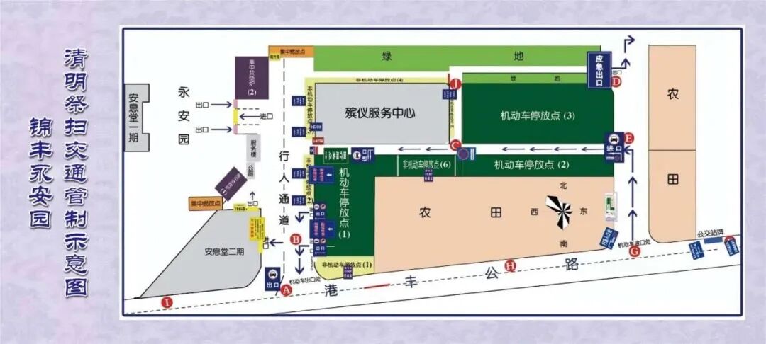 特别提示:清明期间,周末为祭扫人员数量最为集中时段。鹅东安息堂受周边道路及环境影响,无法容纳大量车辆停放,为避免拥堵,影响出行安全,建议广大群众尽量避开祭扫高峰期,实行错峰祭扫,尽量选择绿色出行方式,减缓路面压力。