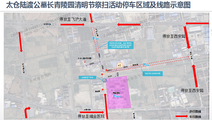 中市路飞沪大道路口:对进入飞沪大道的中重型货车进行限行,不得往北通行,引导扫墓车辆往北停放至瑞金医院地下停车泊位;