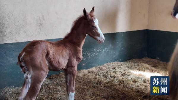 目前,马场内共生活着大大小小18匹马。其中,一匹刚出生3天的小马驹是今年在吴江诞生的首匹汗血宝马。