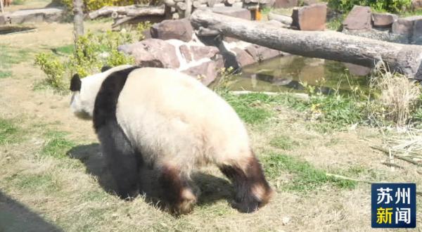 昨天(3月21日)一早,在苏州太湖国家湿地公园内,大熊猫双胞胎姐弟正趁着好天气,时而爬树、时而奔跑,憨态可掬地和游客们互动。
