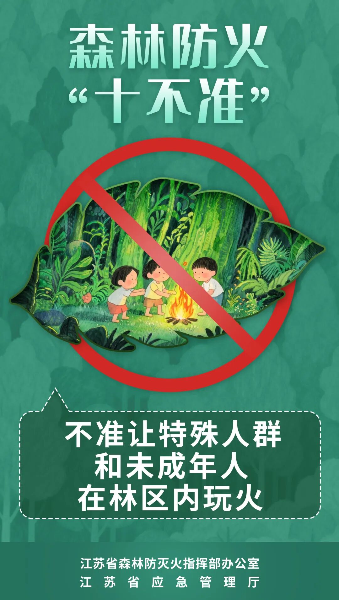 春季气候干燥,大风天气频发,农事、祭祀、旅游等用火较多,正值森林火险高发期,稍有疏忽, 极易引发森林火灾,增强防火安全意识,省森防办、省应急厅提醒:严格遵守防火规定,牢记森林防火“十不准”。