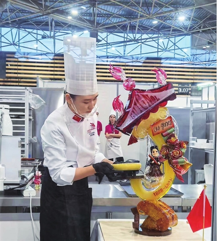 她扎在吴中技师学院的教学一线,把平时积累的抗压办法、材料配比克数以及应对比赛规则的细节,掰开揉碎了教给新来的学生。纠正一个发力姿势、核对配方的微小差别、复盘糖塑倒塌的原因,她带着一批批年轻选手,重新走入自己曾经熬过的那段枯燥岁月。“比赛拿奖只是个结果,手艺的底子全在案台上。”看着实训室里正在拉糖的学生,刘欣茹说,“把克数抠准,把温差卡死,耐得住烦,这点功夫比什么光环都顶用。”