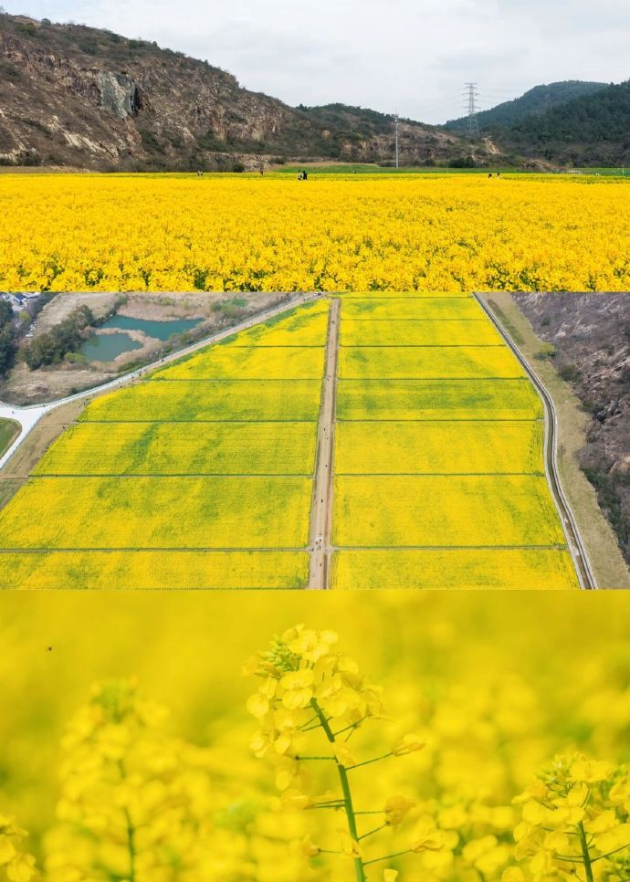 远看层层叠叠的油菜花,像给大地铺上了一层金色的绒毯,随手一拍都是“宫崎骏漫画”同款背景。近观蜜蜂在花间忙碌,一朵朵金黄的小花簇拥在一起,随风摇曳,走在田埂上,治愈感拉满!