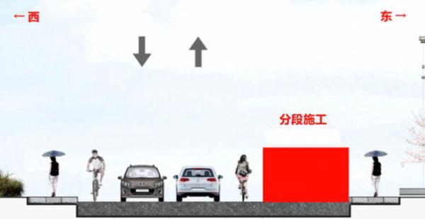 采用全天围挡作业,分段施工的方式。施工占用道路东侧的非机动车道及部分机动车道,机动车与非机动车利用非施工区域正常通行。
