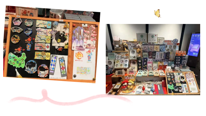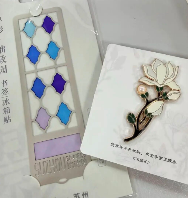 赏花游的尾声往往落在文创店里,网师园附近的文创区域内众多文创品中,玉兰花主题的冰箱贴成为了绝对的“销冠”。