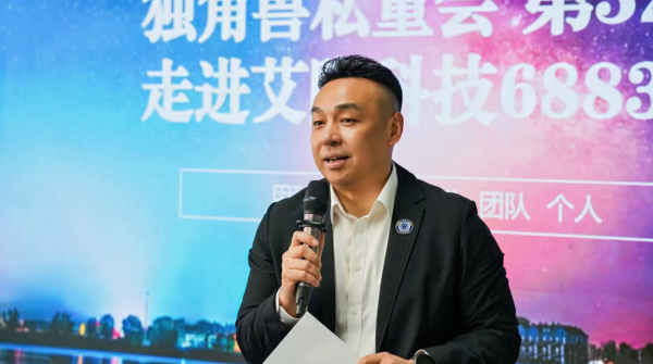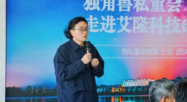 在随后的开场环节,艾隆科技董事长徐立总致欢迎词,并分享了与独角兽私董会的结缘历程。从加入时的半信半疑到深度认可,并期待未来与更多优秀企业家深度互动、共同成长。