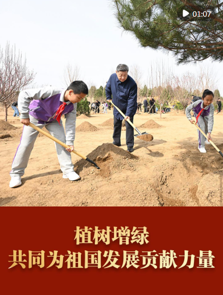 3月30日上午,习近平总书记在参加首都义务植树活动时强调,良好生态人人共享,也需要合力共建。要组织动员全社会广泛参与植树造林,为山川大地增添锦绣,让中国式现代化的底色更加亮丽。