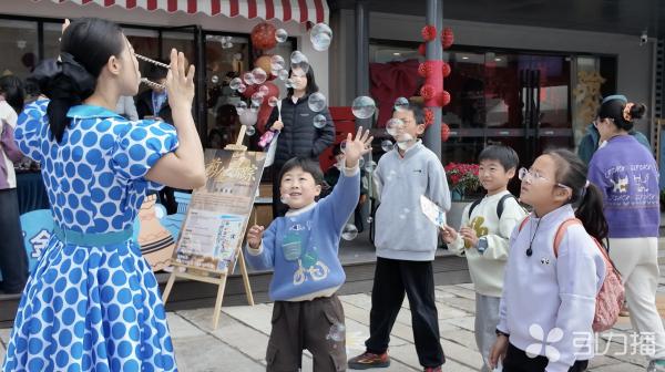 除了琳琅满目的市集摊位,活动期间设置了多重趣味玩法。“剪金寻踪”街巷实景古风寻踪活动邀请游客化身姑苏灵脉守护者,解锁千年前的“剪金”之谜,沉浸式感受古巷的历史底蕴。在牌坊口,“剪金桥巷声音漫游地图”吸引不少游客扫码收听,跟随声音一起聆听藏在老街坊的点滴往事,触摸古巷的烟火温度。当天下午,梦幻泡泡秀活动更是让小朋友们欢呼雀跃,在春日暖阳下尽情享受欢乐时光。