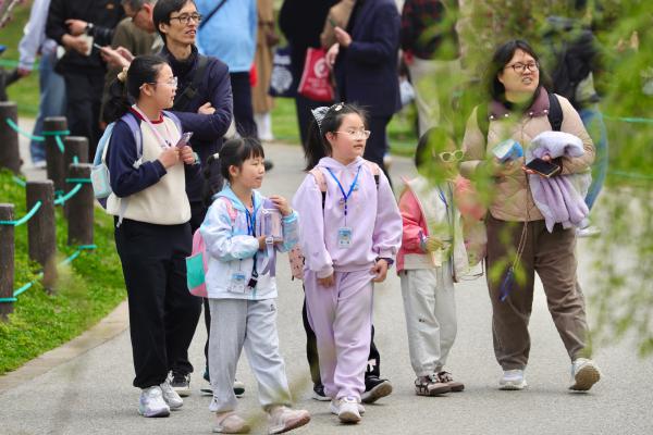 昨天(4月1日)是苏州中小学春假首日,苏州植物园内迎来学生客流高峰。学生们走出课堂来到大自然,草坪上、林荫下,随处可见孩子们追逐嬉戏的身影,一张张笑脸与烂漫春花相映成趣,镜头定格处,处处是少年们与春天相遇的美丽瞬间。