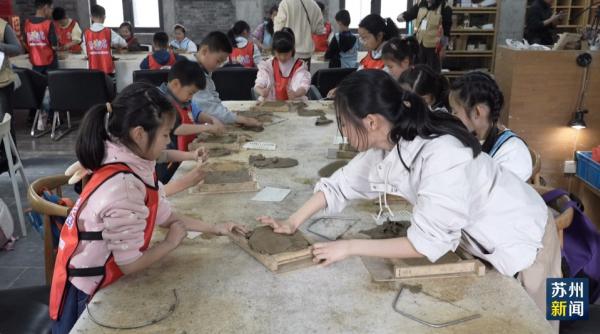 春假期间,苏州御窑金砖博物馆推出了手作小金砖、非遗蟋蟀罐、非遗缂丝体验等十余项特色活动,研学预约火爆。