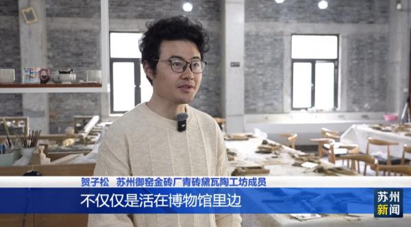 苏州御窑金砖厂青砖黛瓦陶工坊成员贺子松介绍,截取了二十九道工序其中的三五道工序,希望金砖不仅仅是活在博物馆里边,现在还在不断地制作 。