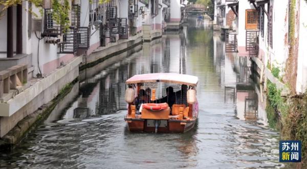 在苏州织造署旧址,不少学生和家长一早来到这里游览。除了赏景,孩子们还登上游船,泛舟十全河。