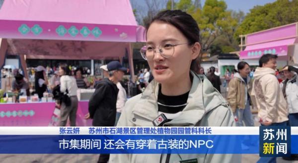 苏州市石湖景区管理处植物园园管科科长张云妍介绍,市集期间还会有穿着古装的NPC在市集之间穿梭,与游客开展飞花令之类的互动活动,提升游客的体验。