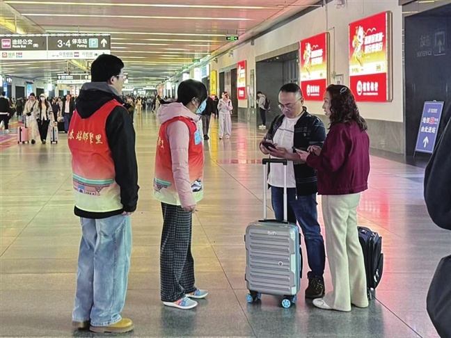 一抹“志愿红”,温暖出行路。清明小长假期间,苏州火车站迎来客流高峰,出行保障压力陡增。为守护旅客平安顺畅出行,营造安全有序、文明舒心的出行环境,平江新城的“苏站邻聚里”志愿者团队主动担当、坚守一线。志愿者们身着统一志愿马甲,在进出站口、售票大厅、检票通道、地铁换乘枢纽等关键点位布点设岗,构建起全方位志愿服务闭环。他们分工明确、默契协作,化身旅客身边的“秩序员”“引导员”,有序疏导人流,温馨提醒群众文明排队、安全候车,及时排查拥挤隐患,全力保障车站秩序井然。