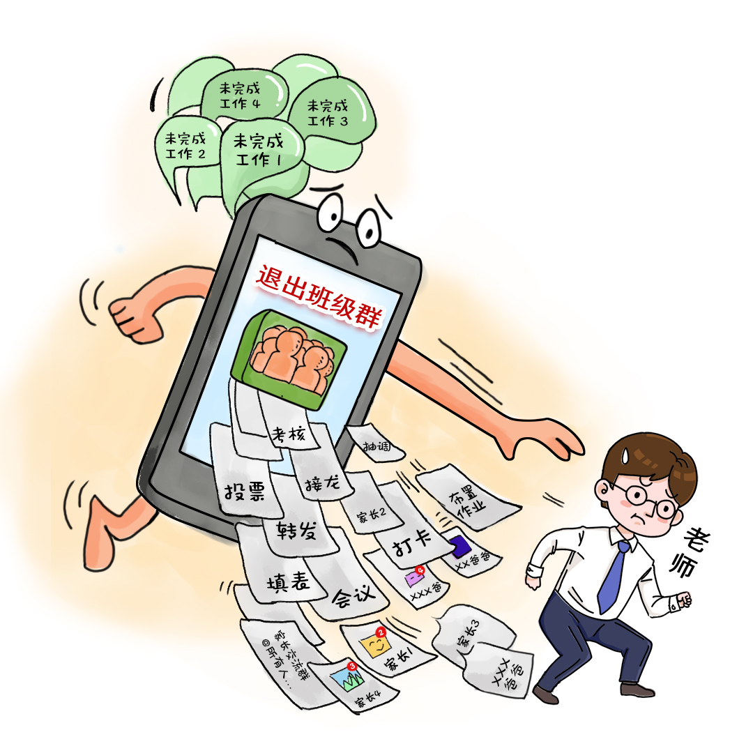 有媒体发布的一项调研显示,超六成教师反映各类检查、考核、创建活动等非教学工作量增加,占用了过多时间精力。这些任务挤占了备课、教学、批改作业的时间。退出家长群,不过是把沟通从“大群”转移到“私聊”,非教学任务一件没少,沟通成本反而更高了。家长这边,焦虑同样不减反增。班主任退群后,孩子作业情况、在校表现的信息渠道中断,群聊转战私聊,甚至自发组建更多“小群”来弥补信息差。一个群消失了,五个群冒出来——形式变了,负担却更重了。