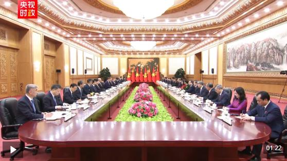 习近平指出,你当选越南国家主席后第一时间到访中国,体现了你对发展中越关系的高度重视。无论国际形势如何变化,中方始终将越南作为周边外交优先方向,愿同越方秉持初心、赓续友谊,团结协作、相互支持,高质量推进全面战略合作,加快构建更高水平具有战略意义的中越命运共同体。