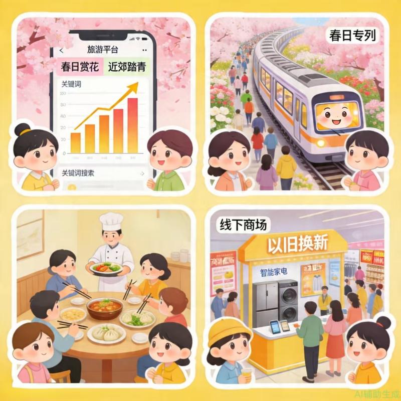 繁花似锦处,消费热浪席卷春日经济。当四月芳菲漫过城市街巷,春日消费的热潮已悄然涌动。旅游平台上,“春日赏花”“近郊踏青”的搜索量如春芽般疯长,景区内游人摩肩接踵,多地增开的“春日专列”载着欢声笑语穿梭于花海之间。餐饮店里,香椿炒蛋、荠菜馄饨等时令春菜成为餐桌新宠,食客们举箸间尽是对季节的仪式感;线下商圈里,以旧换新的展台前人头攒动,智能家电、潮流服饰的更新换代,折射出消费升级的强劲脉搏。从“赏花经济”到“春味经济”,从线下体验到场景焕新,春日消费正以多元形态激活经济“强引擎”,勾勒出一幅生机盎然的复苏图景。
