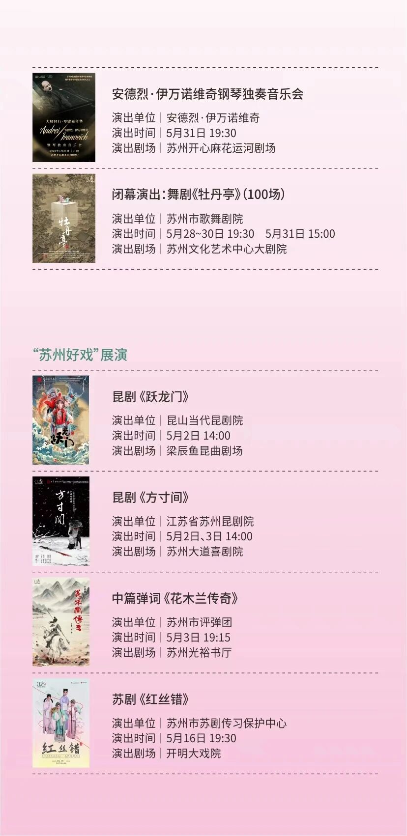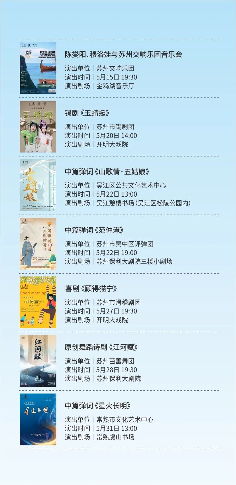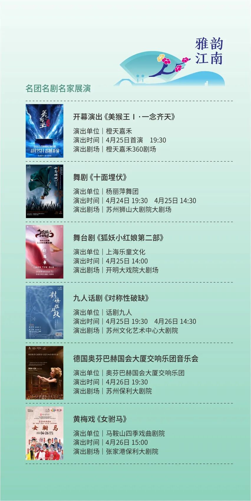 更有昆剧《方寸间》、舞剧《江河赋》、中篇弹词《花木兰传奇》等10部本地院团的“苏州好戏”。