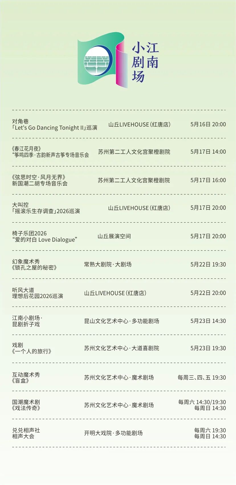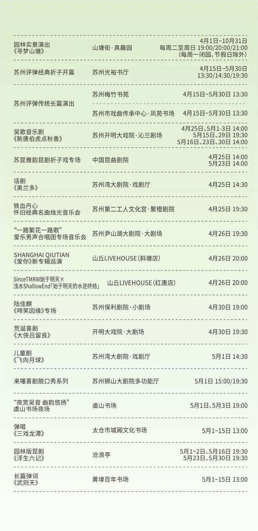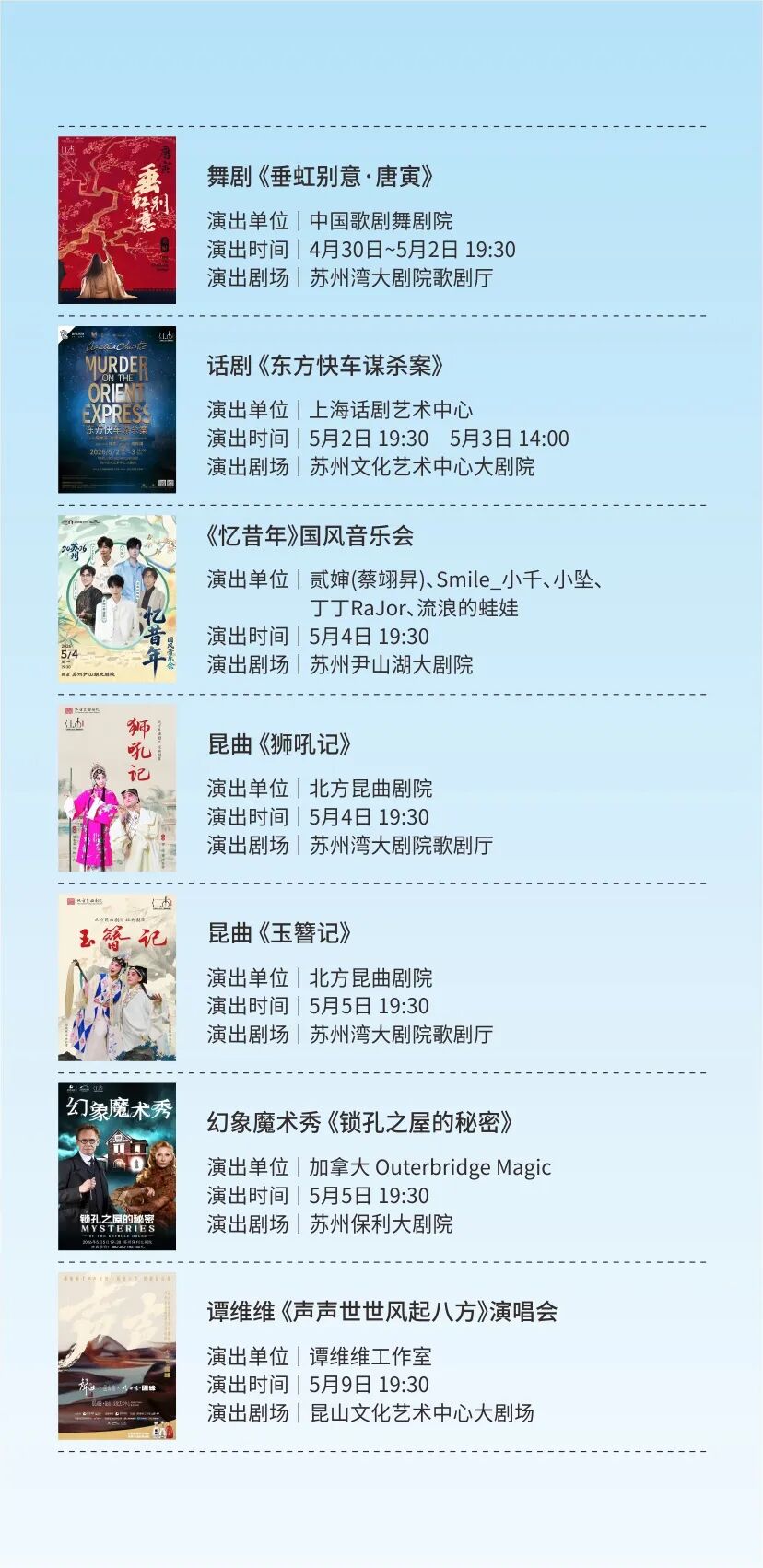 更有昆剧《方寸间》、舞剧《江河赋》、中篇弹词《花木兰传奇》等10部本地院团的“苏州好戏”。