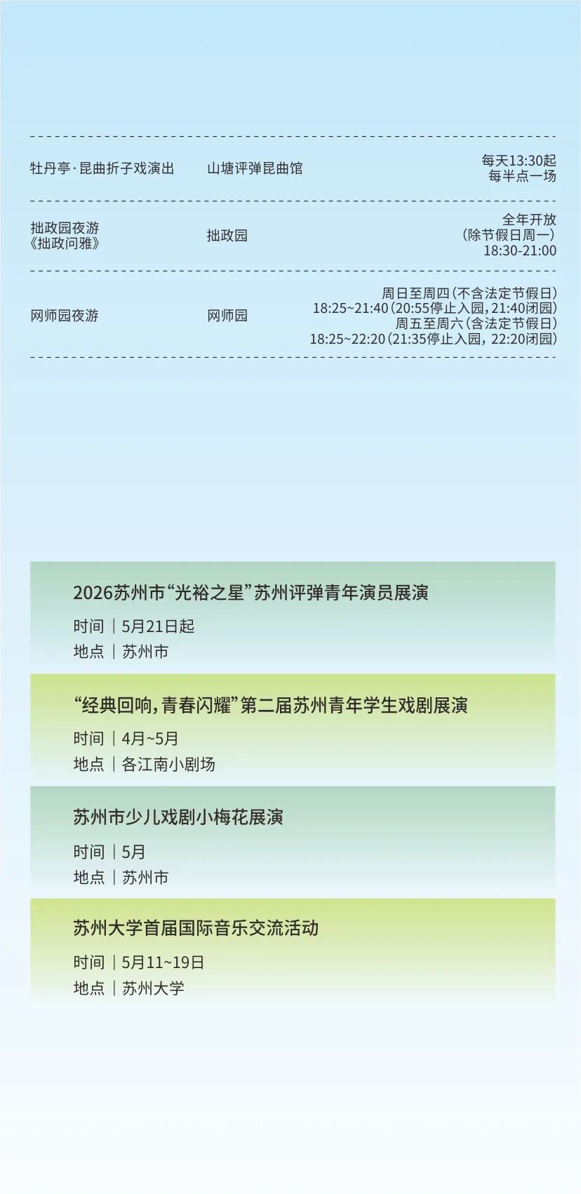 更有全市青少年园林模型大赛、怡园琴学艺术周以及每周10余场“乐游园林”主题研学活动。