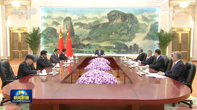 4月21日下午,中共中央总书记、国家主席习近平在人民大会堂会见作为老挝人民革命党中央总书记、国家主席通伦特使专程来访的老挝人革党中央政治局委员、常务副总理沙伦赛。
