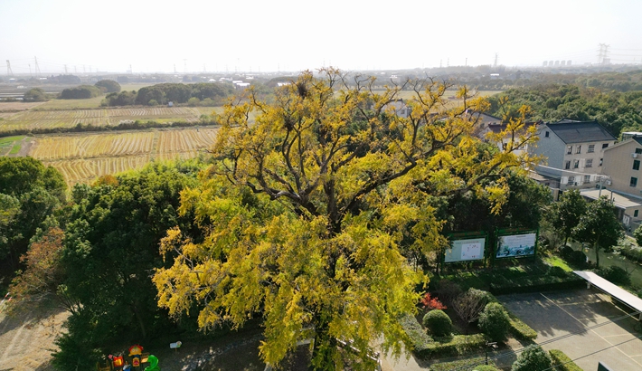 太湖边古银杏黄了 解放吴江的游击队曾在树下集合进军