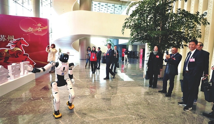 智能机器人“小能”亮相两会现场 憨态可掬还自带科技范