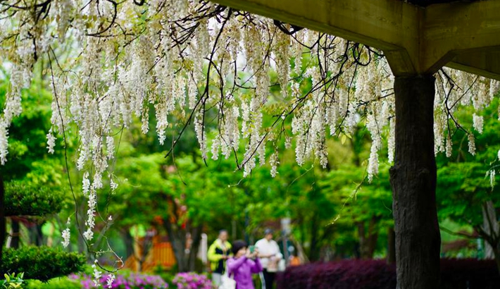 250年白花紫藤开成瀑