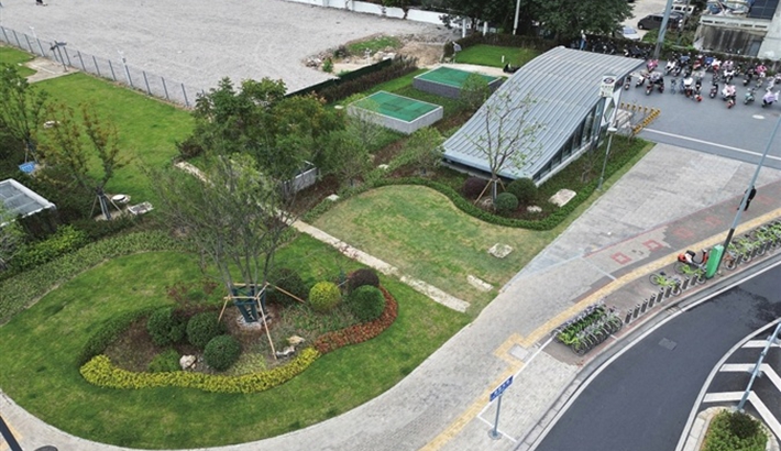 走出地铁站 就是小公园