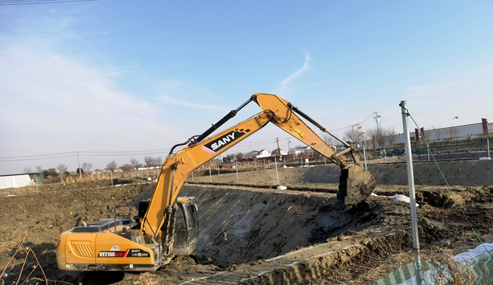 修筑鱼塘保生产