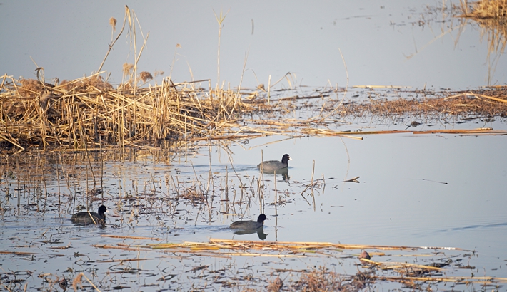 北太湖畔暖阳洒金 候鸟逐浪芦花飞扬