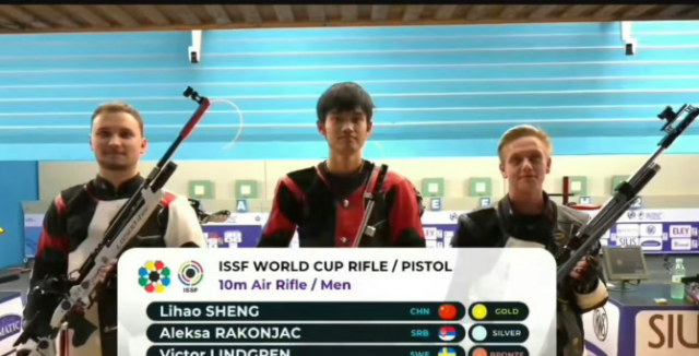 再夺冠!中国选手盛李豪在男子10米气步枪赛场摘得一金