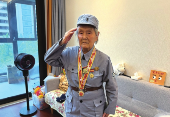 修复定制军装上身 重燃烽火岁月 百岁新四军老兵深情“归队”