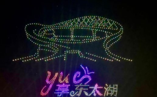 东太湖畔流光溢彩 千架无人机点亮夜空